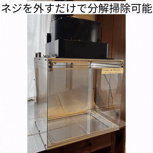 モビルブースは、日常メンテで性能を戻せるように、ファンを含む分解清掃を可能としています。
