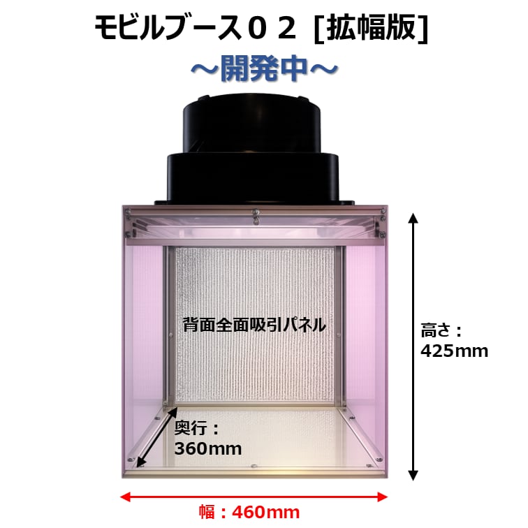 幅46cm×奥行36cm×高さ68cmと、モビルブース01に対して、幅を広げた仕様(36cm→46cm)です。