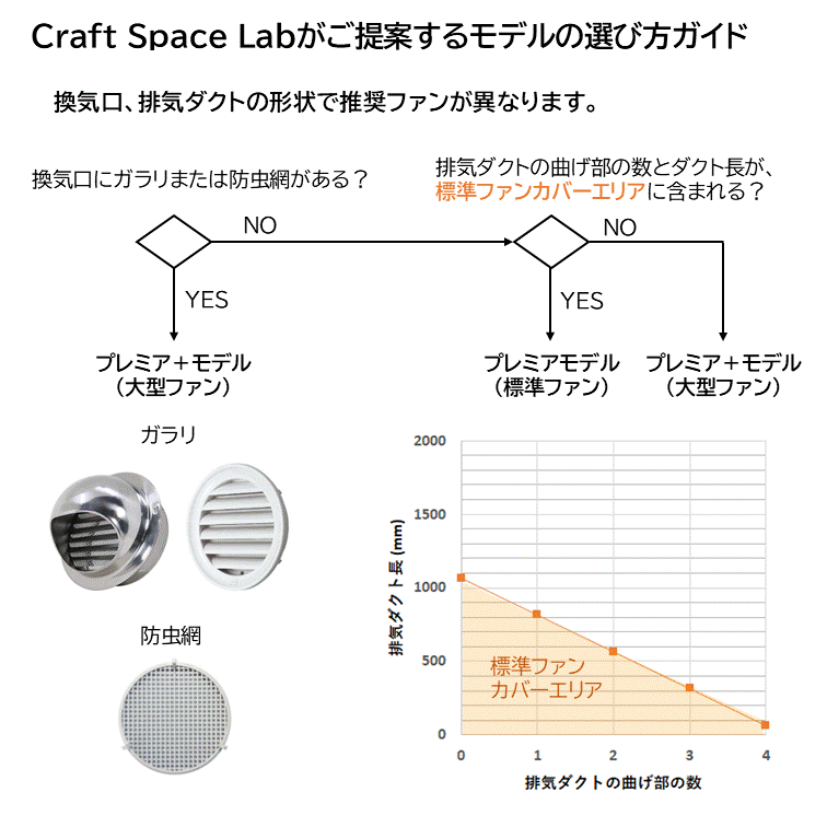 吸引ファンには、騒音への要求性能が厳しい居住区用の換気扇を採用。
