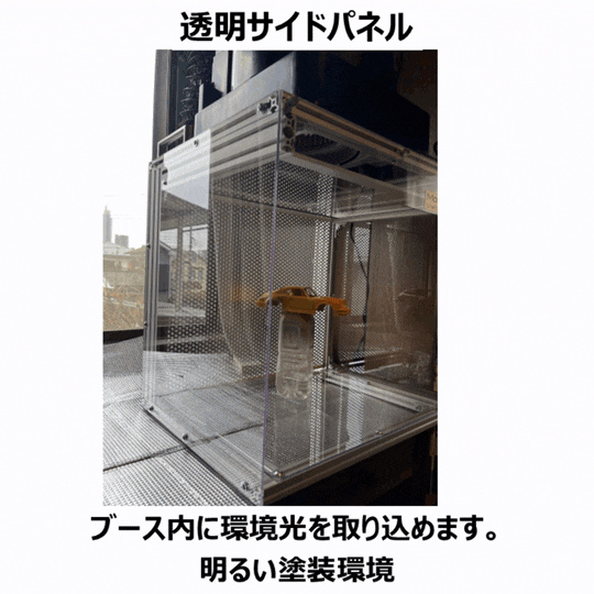 ✔ 『透明サイドパネル』の採用により、環境光をブース内に採光できて、塗装面が明るい。